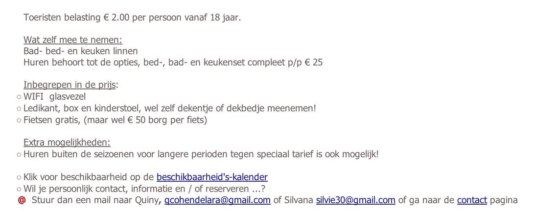 Tarief week bij huur 2 personen. Kinderen tot 2 jaar gratis |