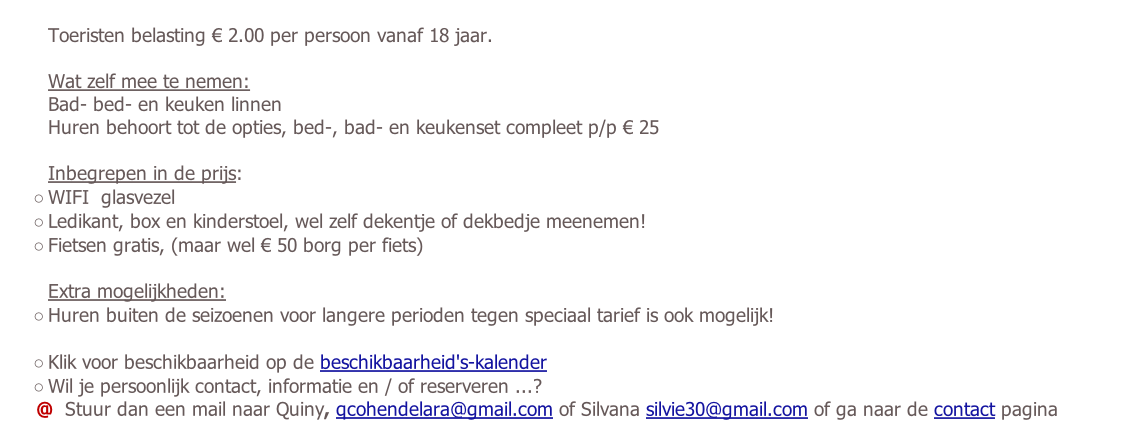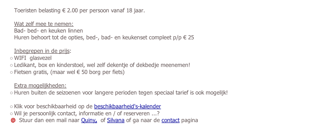 Tarief week bij huur 2 personen. Kinderen tot 2 jaar gratis |